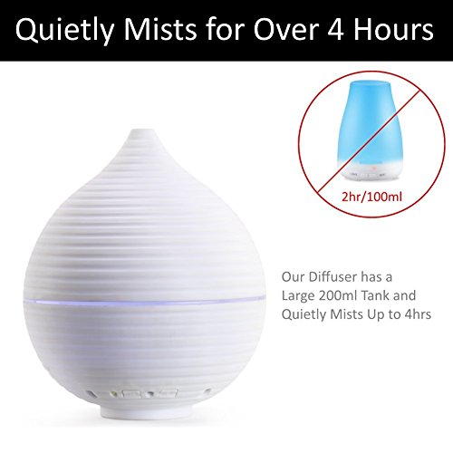 ♠ LARGE 200ml TANK – Most oil diffusers have a small 100ml tank only lasting a couple of hours – Our diffuser has a 200ml tank offering you 4 hours of continuous mist - Enjoy your favorite oils longer