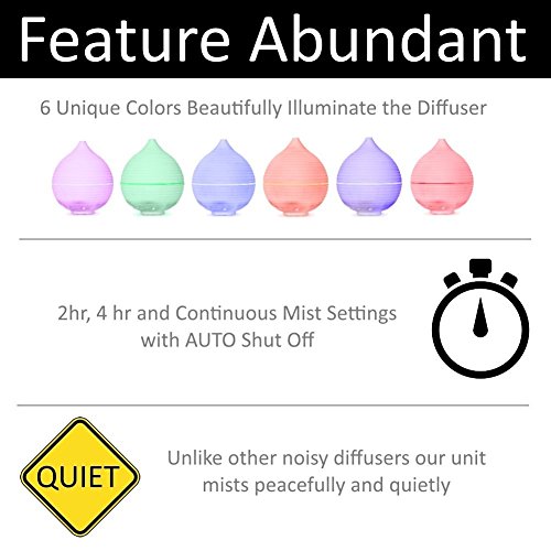 ♠ FEATURE PACKED – Enjoy 6 unique LED color options (fixed/rotating) - Set a timer for 2 to 4 hours of mist - Once the timer has expired or water runs out the unit automatically shuts off - Ultrasonic technology allows unit to run silently