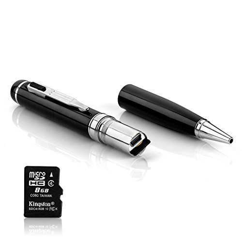 - Feature : Professional-quality Spy Camera Pen features real 1280 x 720 HD quality video that produces laser-sharp video images so you can see exactly what was recorded without being hampered by fuzzy images and distortion / Extended life, 190 mAh lithium ion battery offers you more than 60 minutes of recording time and only takes 45 minutes to fully-charge, so you can record longer and start recording faster / Video surveillance spy pen also comes with an 8Mg memory card so you can store hours of video - Just plug the memory card into your PC or MAC and it's always handy / Hidden camera spy pen can be used to produce 2MP 4032x3024 photos for dramatic still shots that display of all the action captured by your video footage - Great for gathering the evidence you need! - Great for gathering the evidence you need! / Buy with buyer protection and no risk purchase!Our 100% no questions asked no hassle money back or replacement guarantee is the best in the business.Other vendors simply don't have the same quality to provide a one year Guarantee!!