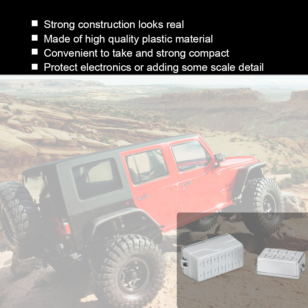 This product is made of high quality plastic material and durable in use. Strong construction let it look real, and it is also convenient to take. Can be used in other chassis and builds to hide away and protect your electronics or just add some scale detail. This is the good choice to decorate your crawler RC car. Just what you are looking for.