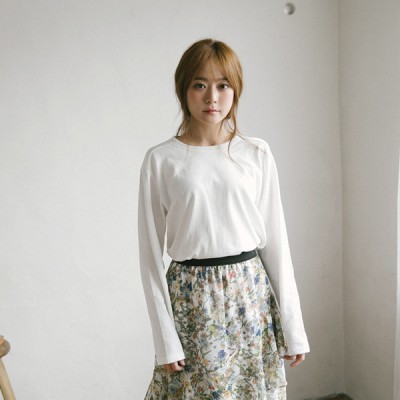 # 원단과 디자인 톡톡한 중간두께의 간절기부터 겨울까지 함께하기 좋은 티셔츠입니다. 심플한 디자인이지만 밑단 언발란스 절개에 부드러운 라운드 네크라인, 어깨선 디자인으로, 체형 커버하기 좋은 스타일이에요. 소매통도 여유있어 루즈하고 여성스러운 느낌이 들기도 한답니다. # 착용감과 핏 크게 부드럽지는 않지만 까슬거림없이 단단한 느낌으로 흐물거림없고 핏 예쁜 티셔츠에요. 기장은 골반라인을 넘어서 힙라인까지 오기때문에 부담없이 여기저기 매치하기 좋습니다. # 사이즈팁 ![]() |
