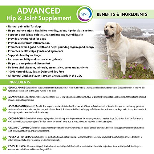 120 DELICIOUS CHICKEN FLAVORED SOFT CHEWS YOUR DOG WILL LOVE: We have created a delicious natural-based soft chew that has the vitamins, minerals, antioxidants, essential enzymes, and nutrients necessary for your pets health, daily energy and strength. Each of the soft chews is formulated to support healthy joint function, improve injury, flexibility, mobility, aging and hip dysplasia in dogs. As a natural pain relief for dogs, it helps their joints, soft tissues, cartilage and overall health
