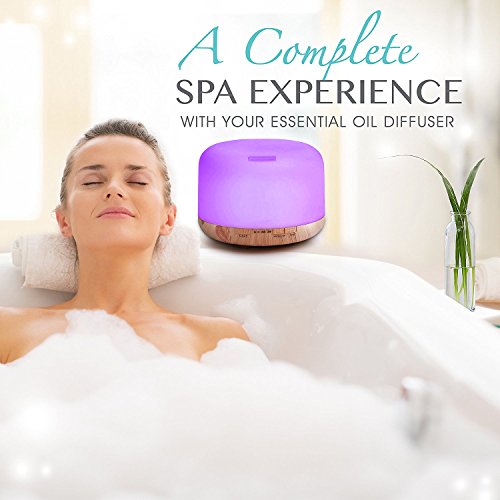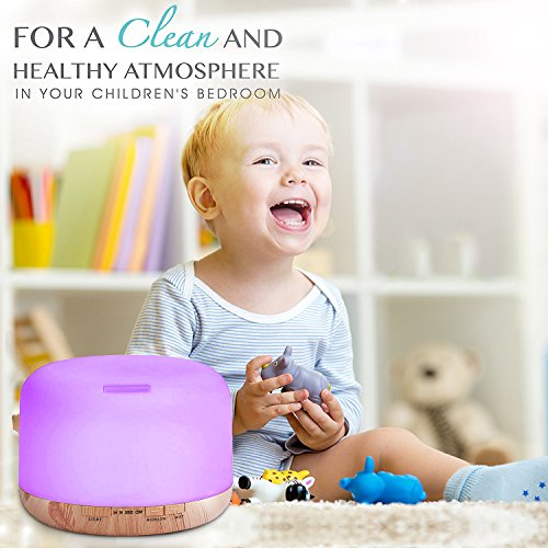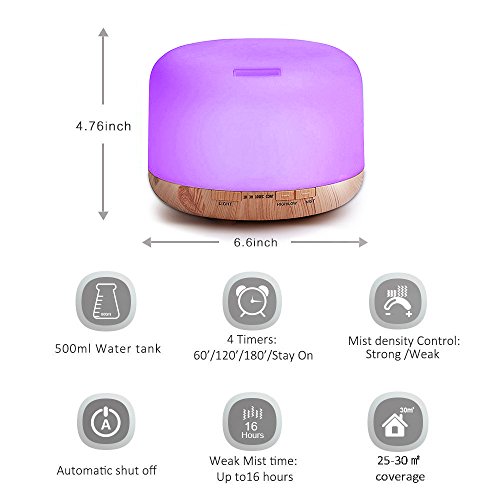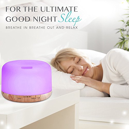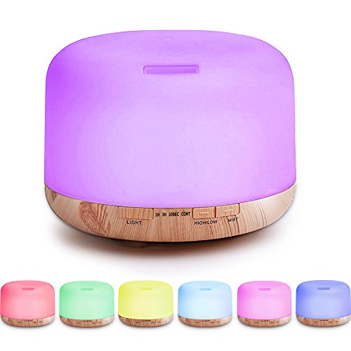 Oil Diffuser - 500 ML Aromatherapy Essential Portable Ultrasonic Wood Base Humidifier with Cool Mist 7 Color Lights Changing and Waterless Auto Shut-off Function for Home Office Bedroom (500 Wood)