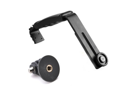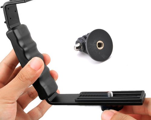 Dual Shoe Microphone / Video Light L Bracket Mount with 2 Standard Flash Hot Shoes and Tripod Adapter for GoPro Hero 1, Hero 2, Hero 3, Hero 3+, Hero 3 Plus, Hero 4 Camera - Black
