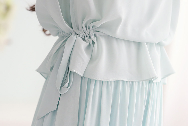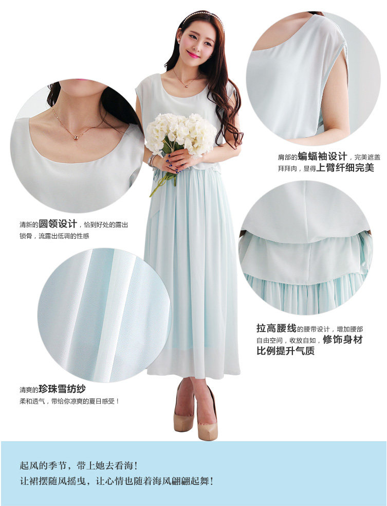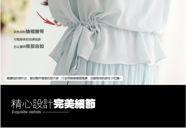 | 清新的圆领设计,恰到好处的露出锁骨,流露出低调的性感,从肩部 到腰部的褶皱,突出了线条感让整体简约但不单调.蝙蝠袖设计,完美遮盖蝴蝶袖的拜拜肉,显得上臂纤细完美.腰部荷叶边,增加整体的层次感,更能有效的 隐藏小肚腩~流露淑女情节,拉高腰线的腰带设计,增加腰部自由空间,收放自如,修饰身 材比例提升气质.精选优质亲肤材质里衬,透气性强,穿着感觉 面料会呼吸一样,防透防走光,让您穿着更随意.起风的季节,让裙 摆随风摆动,穿上她心也随风起舞~ |