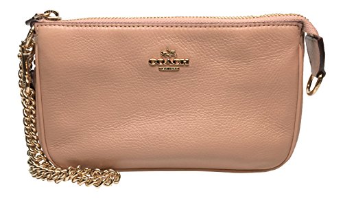 -. Feature : Imported - Nude Pink Pebbled Leather / Zip Top Closure - Gold Tone Hardware, Detachable On One Side Chain Link Wrist Strap / Interior Features: Nude Pink Fabric Lining, Multifunction Pocket, Large Full Length Slip Pocket and 2 Credit Card Slip Pockets / Approximate Measurements: 7 1/2" (L) x 4 1/2" (H) x 2" (W)