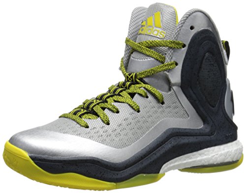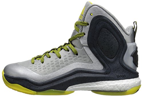 adidas Performance D Rose 5 Boost J Kids' Basketball Shoe (Big Kid), Silver/Vivid Yellow, 7 M US Big Kid