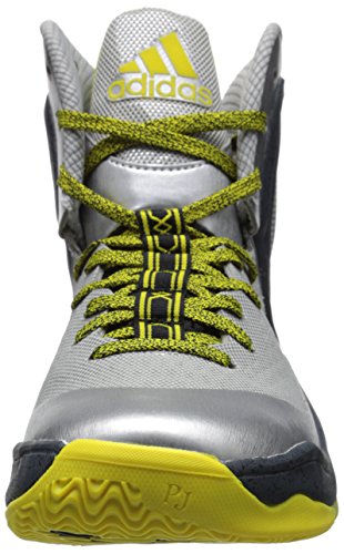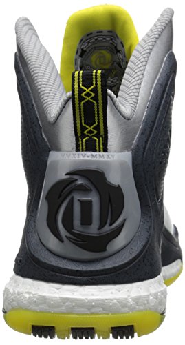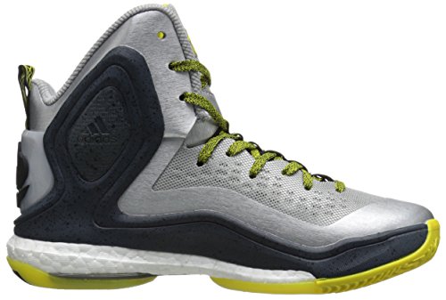 adidas Performance D Rose 5 Boost J Kids' Basketball Shoe (Big Kid), Silver/Vivid Yellow, 4 M US Big Kid