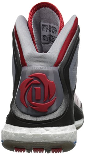 adidas Performance D Rose 5 Boost J Kids' Basketball Shoe (Big Kid), Granite Grey/Light Scarlet, 4 M US Big Kid