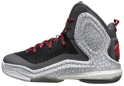 adidas Performance D Rose 5 Boost J Kids' Basketball Shoe (Big Kid), Granite Grey/Light Scarlet, 4.5 M US Big Kid