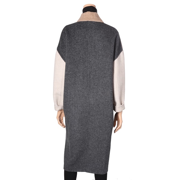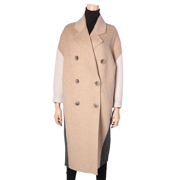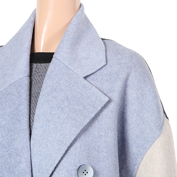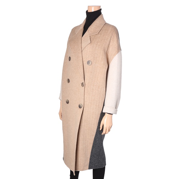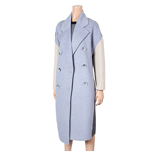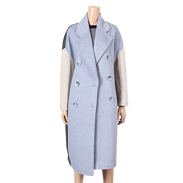 컬러배색이 멋스러운 롱기장의 더블 코트 입니다.