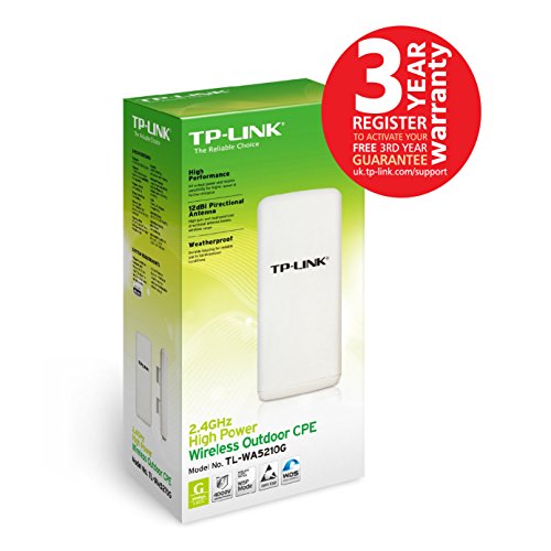 TP LINK High Power Wireless Access Point TL WA7210N is designed for WISP CPE solutions and long distance wireless transmission solutions. It features up to 500mw wireless transmission power and has a built in 12dBi dual polarized antenna, which provides an efficient way to pick up and maintains a stable signal for a wireless connection within several miles. Professional Outdoor Design. TL WA7210N features a water proof enclosure and special protection against 15KV ESD and 4000V lightning. It supports passive Power over Ethernet (PoE), making it easy to deploy. Multiple Applications: TL WA7210N can be used as a client in the WISP application. Alternatively, two TL WA7210N can create a long range point to point connection. What's more, the TL WA7210N can create point to multi point connections, covering multiple locations.Feature