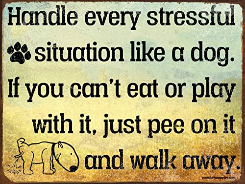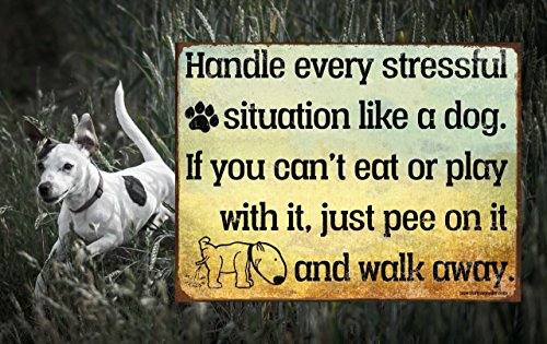 Funny Dog Signs ~ Handle Every Stressful Situation Like a Dog… ~ Metal 9 x 12 inches ~ USA Made ~ Dog Lover, Walker, Sitter, Veterinarian, Groomer, House, Doggie Daycare, Decor & Gifts