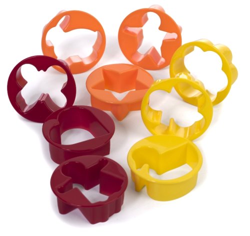 - Includes 9 cookie cutters in assorted shapes and colors: red, orange, yellow; star, bunny rabbit, heart, duck, boy, girl, butterfly, and shamrock