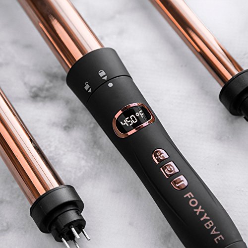 FoxyBae ROSE GOLD 3 in 1 CURLING WAND Temperature Control Professional Salon Grade Negative Ion