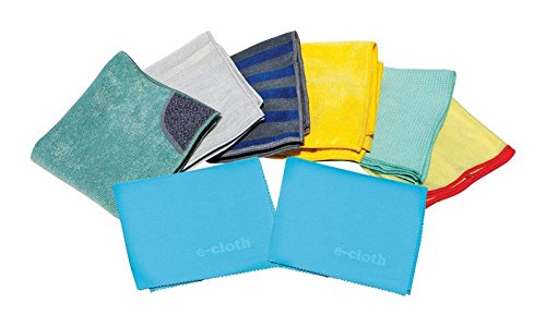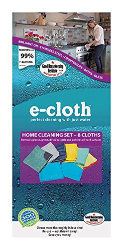 -. Feature : Includes two Glass and Polishing Cloths, a Kitchen Cloth with scrubbing pocket, a Bathroom Cloth, a Window Cloth, a Dusting Cloth, a Stainless Steel / Cloth, and a Range and Stovetop Cloth / E-Cloth fibers attract moisture and oil lifting and trapping dirt / For all types of hard surfaces such as stainless steel / Guaranteed for 300 machine washings