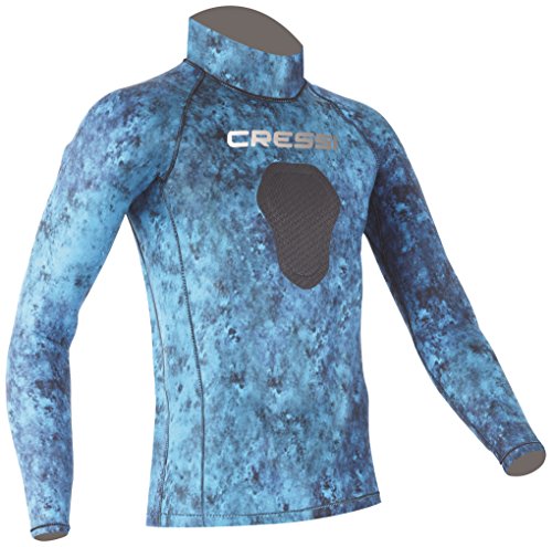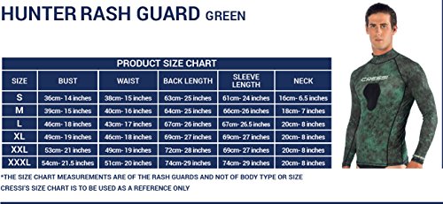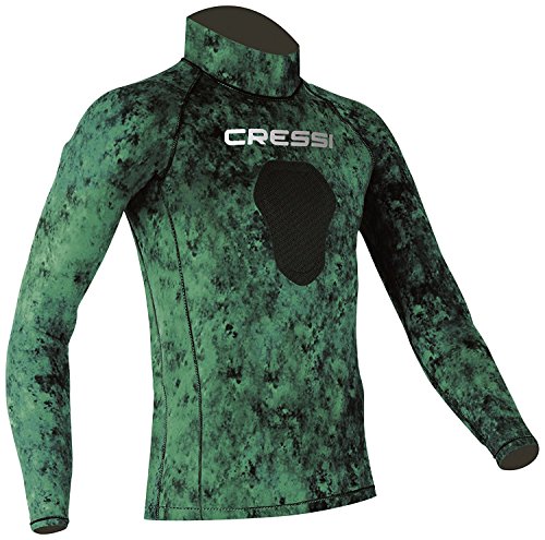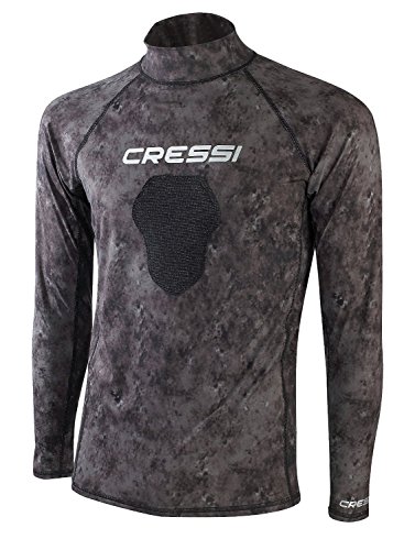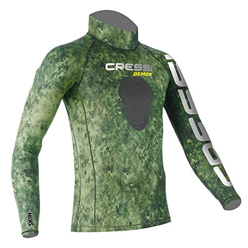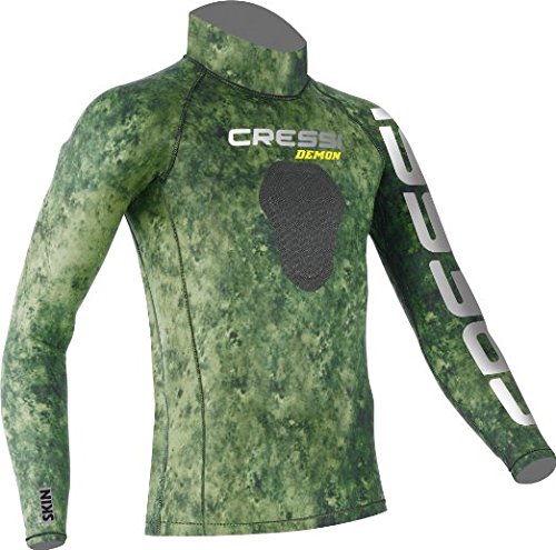 Studio : Cressi U.S.A. Publisher : Cressi U.S.A. Binding : Sports Product Description Cressi Demon Rash Guard with chest pad-When these Rash Guards are worn over a classic wetsuit, they noticeably increase a diver s chances of getting close to a fish, because the camouflage blends the fisherman s profile with the seabed. Made in various camouflage colors Can be used as light heat insulation and protection against UV rays. 0