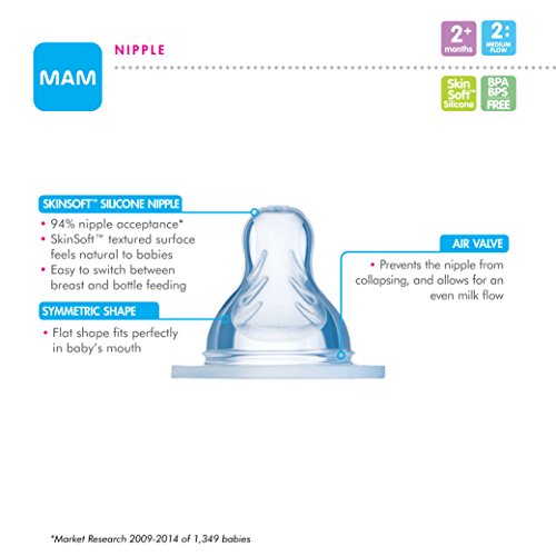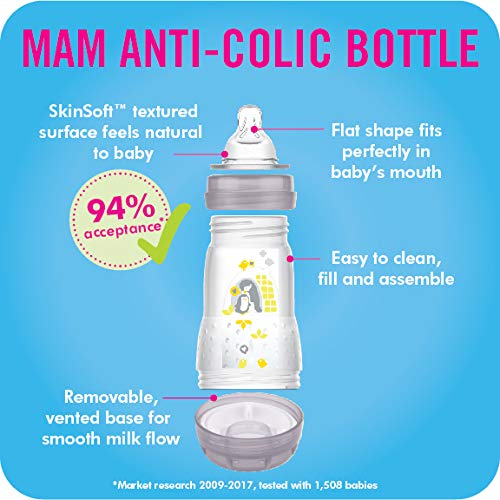 MAM Anti-Colic Baby Bottlesは、授乳中の赤ちゃんやフォーミュラで育てられた赤ちゃんにとって理想的な哺乳瓶です。母乳のように感じるように設計されたSkinSoft TMニップルを搭載して、母乳育児と瓶授乳を切り替えるのは簡単で簡単です。さらに良いのは、94%*の赤ちゃんがそれらを喜んで受け入れ、飲んでいます。これをMAM Anti-Colic Baby Bottlesの高度なアンチコリックデザインシステムと組み合わせることで、疝痛、ガス、逆流の症状を軽減できます。