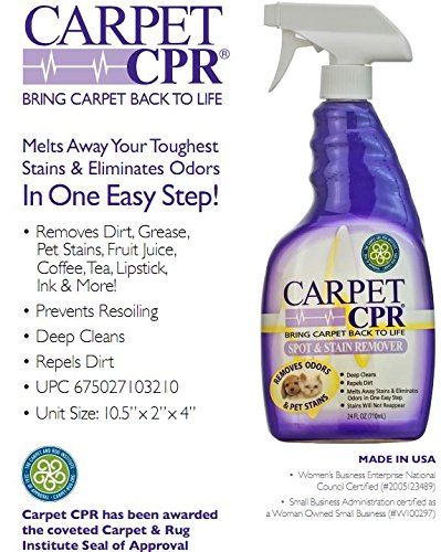 -. Title : Carpet CPR (34oz) Eliminates Tough Stains & Pet Odors in One Easy Step – Wipes out Pet Stains, Red Wine Spills, Dirt, Grease & More – Treats Spots, Deep Cleans & Repels Dirt in Minutes
