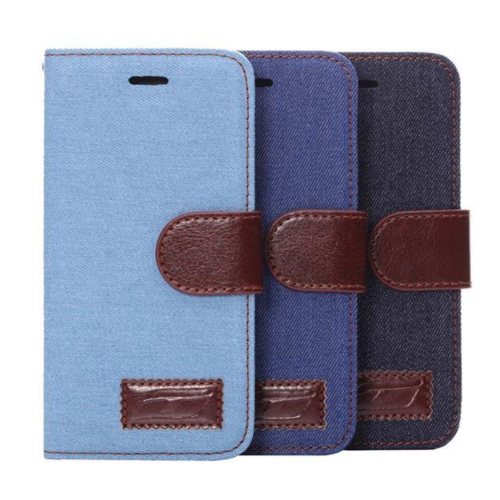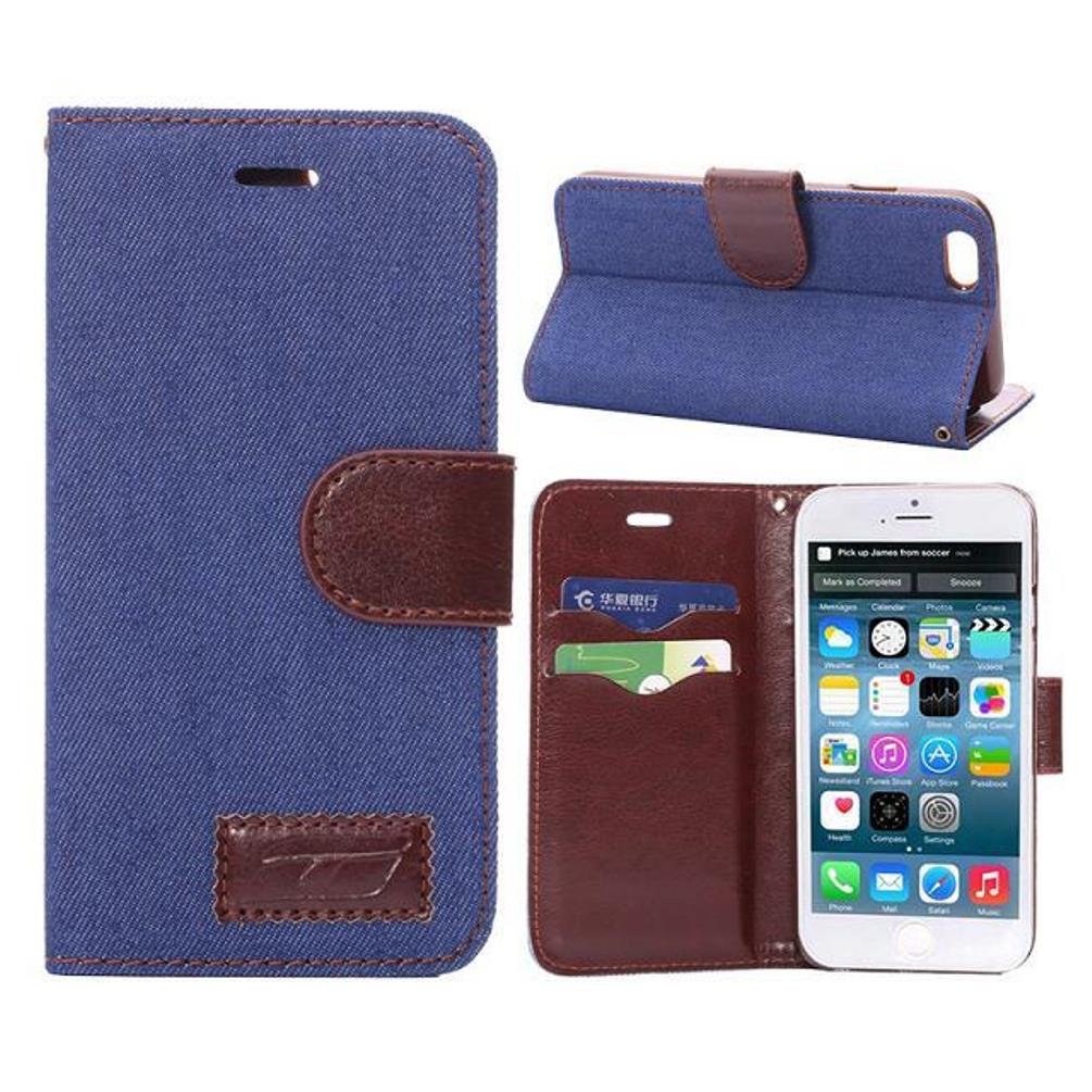 A notebook type iPhone 6 Plus case made of denim fabric.