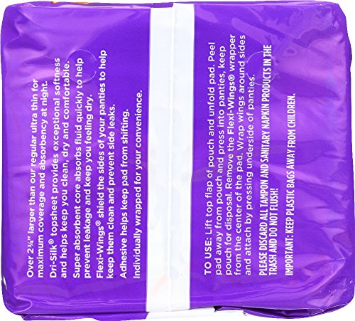 Product DescriptionOver 2 3/4" larger than our regular ultra thin for maximum coverage and absorbency at night.0