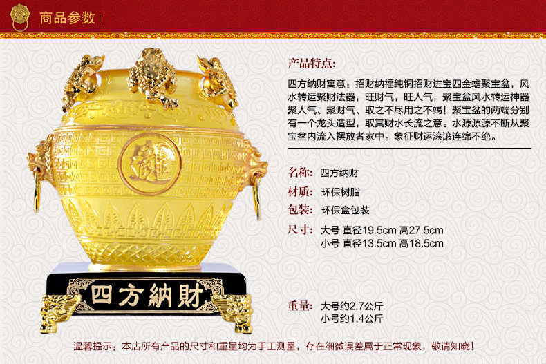 聚宝盆招财工艺品摆件四方纳财风水客厅办公室玄关家居装饰品摆设