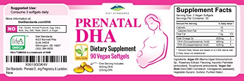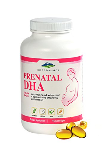 NATURAL INGREDIENTS - Made in the USA. Diet Standards Prenatal DHA Supplement contains 450mg DHA derived from Algae grown in a clean, sustainable environment. Plus 225mg EPA (from algae) to create the ideal Omega-3 blend for you & your baby. Omega-3 DHA is a fatty acid that has been shown to play a big role in baby brain, nervous system, and eye development.