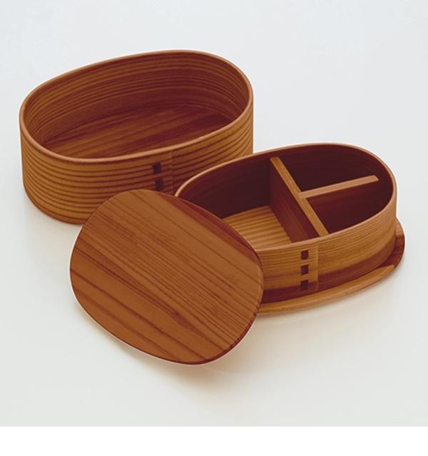 | 日本伝統の曲げわっぱの二段弁当箱。 |