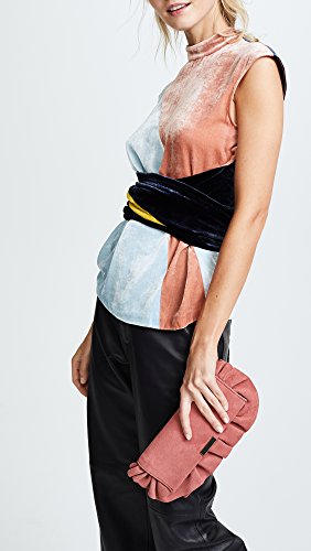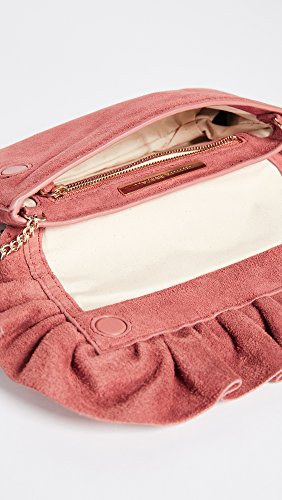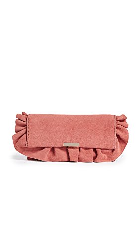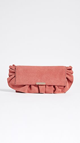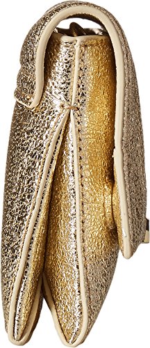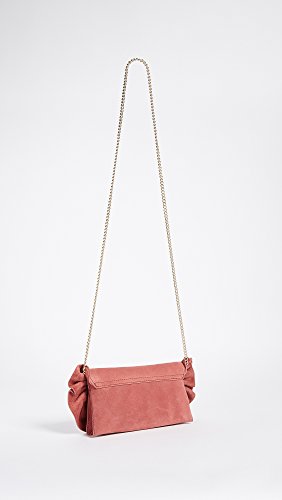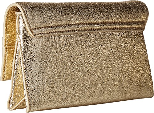 -. Feature : Fold-over clutch featuring patterned woven fabric with fringe at each side / Cross-body chain strap