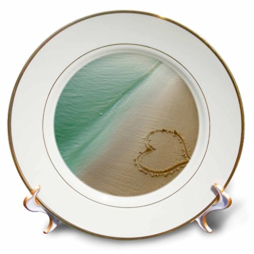 3dRose cp_173299_1 Heart Shape Symbolizing Love, Heart Carvedin Sand on The Beach Porcelain Plate, 8-Inch