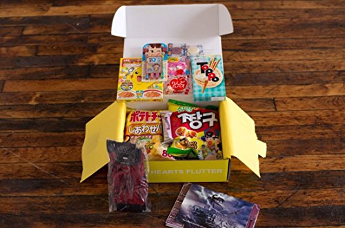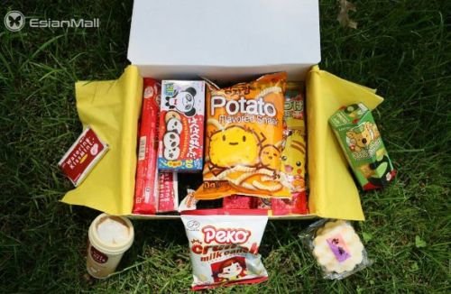 -. Feature : 12-14 random delicious asian snacks / include 1-2 geeky merchandise (t-shirt, socks, wallet, FunKo, etc.) / We also went along and included a picture as an example of how the box would look like upon arrival.