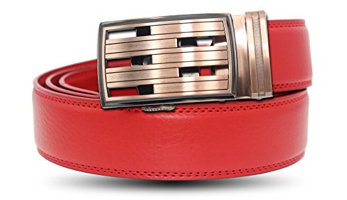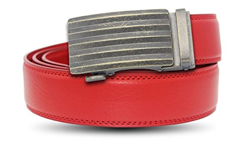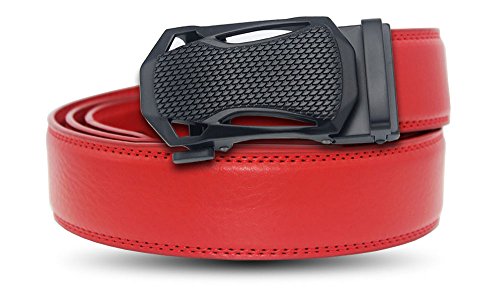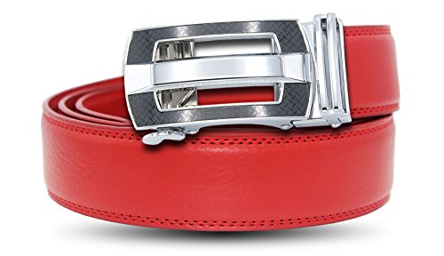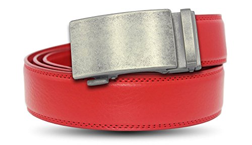EZ CLICK BELTS Men's Leather Belts (Waist 28"- 46", Red Leather with Elite Buckle)