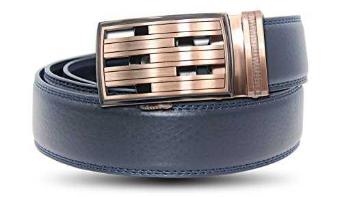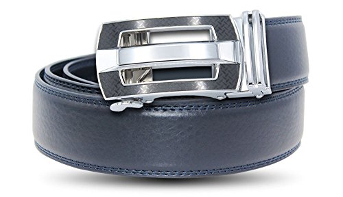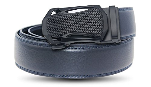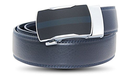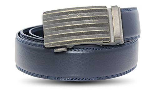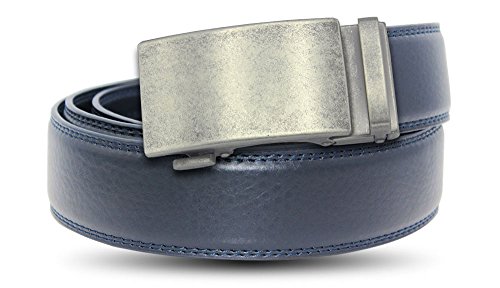 EZ CLICK BELTS Men's Leather Belts (Waist 28"- 46", Blue Leather with Elite Buckle)
