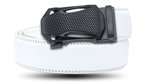 EZ CLICK BELTS Men's Leather Belts (Waist 28"- 46", White Leather with Elite Buckle)