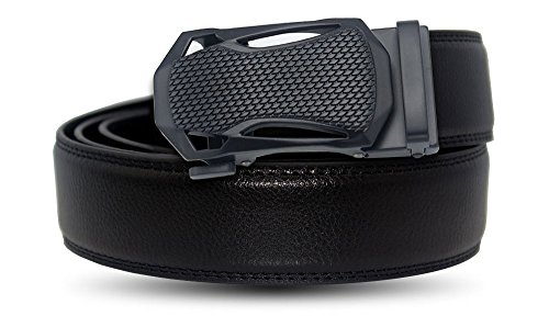 EZ CLICK BELTS Men's Leather Belts (Waist 28"- 46", Black Leather with Elite Buckle)