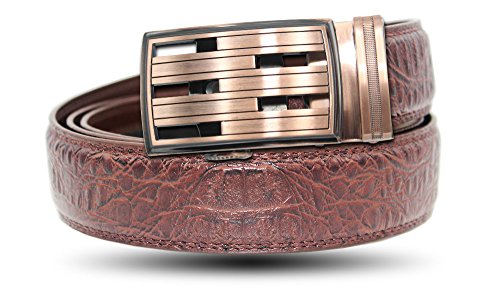 EZ CLICK BELTS Men's Leather Belts (Waist 28"- 46", Mocha Alligator Leather with Gladiator Buckle)