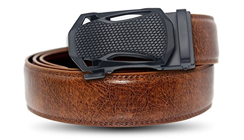 EZ CLICK BELTS Men's Leather Belts (Waist 28"- 46", Brown Leather with Diamond Plate Buckle)