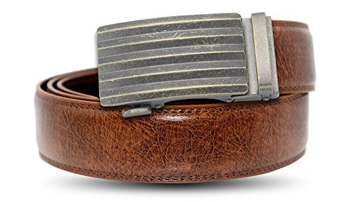 EZ CLICK BELTS Men's Leather Belts (Waist 28"- 46", Brown Leather with Gladiator Buckle)