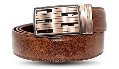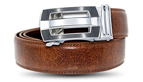 EZ CLICK BELTS Men's Leather Belts (Waist 28"- 46", Brown Leather with Elite Buckle)