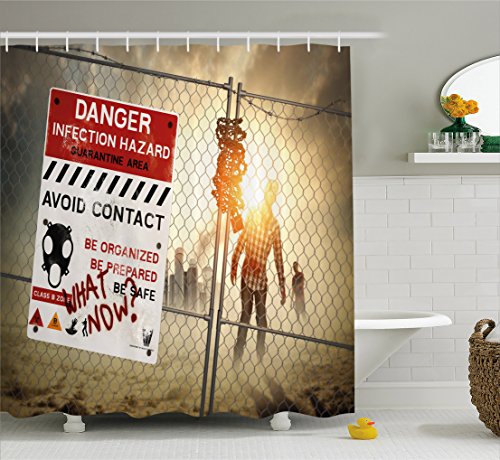 Zombie Decor Shower Curtain by Ambesonne, Dead Man Walking Dark Danger Scary Scene Fiction Halloween Infection Picture, Fabric Bathroom Decor Set with Hooks, 70 Inches, Multicolor