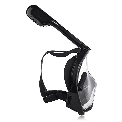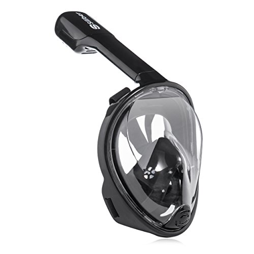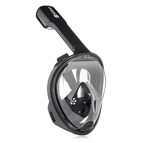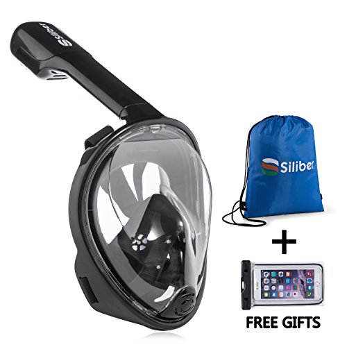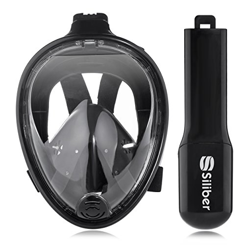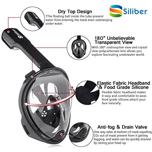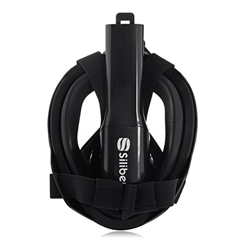 Siliber 180° Full Face Snorkel Mask Full Panoramic View Snorkeling Mask,Easy Breathe with Anti Fog & Anti Leak Design,See More with a Larger Viewing Area,Snorkeling Mask for Adult Swimming,Black-S/M