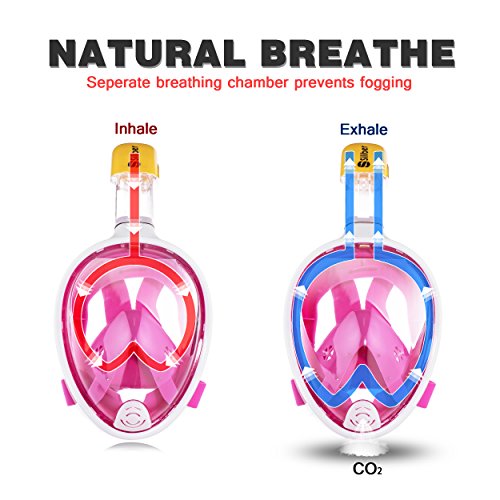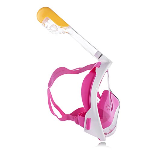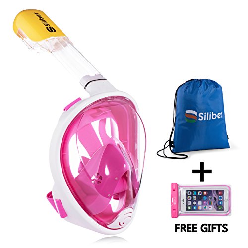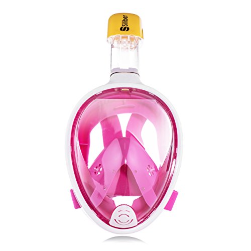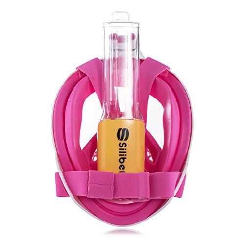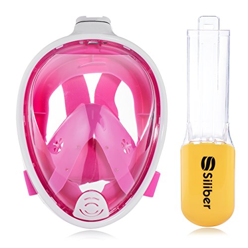 Siliber 180° Full Face Snorkel Mask Full Panoramic View Snorkeling Mask,Easy Breathe with Anti Fog & Anti Leak Design,See More with a Larger Viewing Area,Snorkeling Mask for Adult Swimming,Pink-S/M
