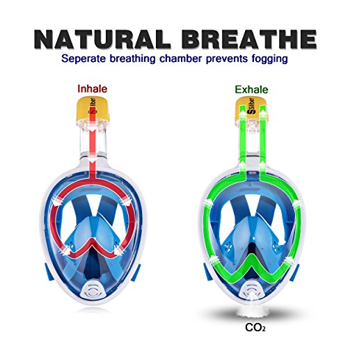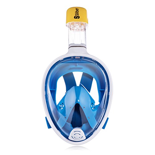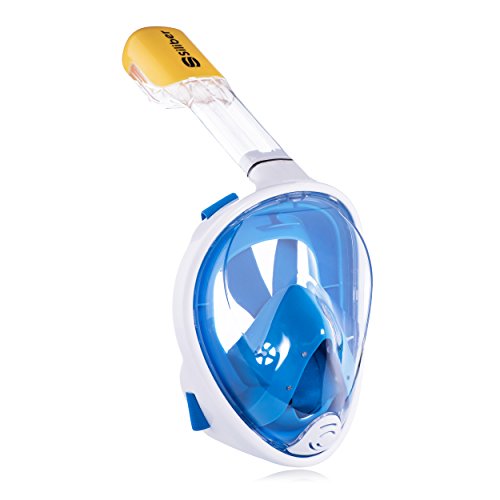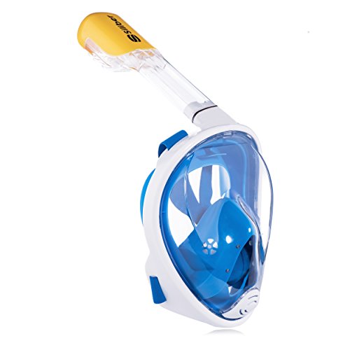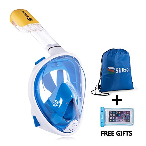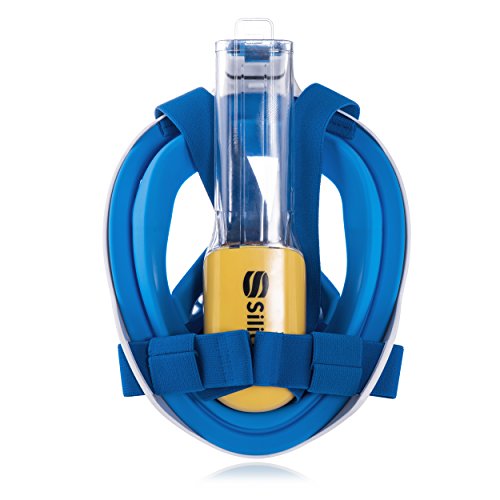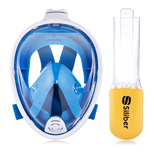 Siliber 180° Full Face Snorkel Mask Full Panoramic View Snorkeling Mask,Easy Breathe with Anti Fog & Anti Leak Design,See More with a Larger Viewing Area,Snorkeling Mask for Adult Swimming,Blue-S/M