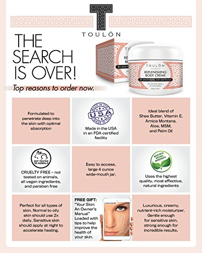PROTECT YOUR SKIN WITH ARNICA CREAM HEALING BODY LOTION. Remove and prevent bruises, stretch marks & scars. Daily moisturizing bruise cream nourishes skin to erase black and blue spots, red and silver stretch marks & old or new keloid scars. Minimizes surface or deep scarring & fades stretch marks from maternity pregnancy, growth spurts or weight loss. Correct burn scars and surgical scars from c-section surgery.