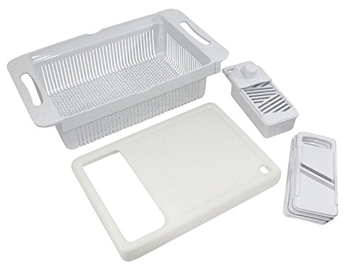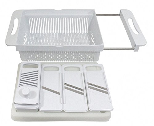 TCI Large Over-Sink Colander, Cutting Board, Slicer