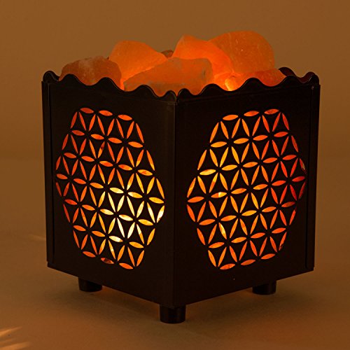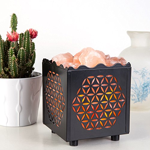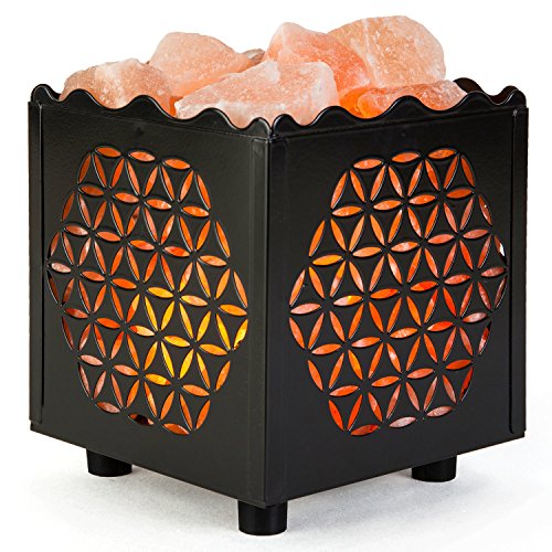 Crystal Decor Natural Himalayan Salt Lamp Metal Basket with Dimmable Cord, 5 by 5-Inch, Flower