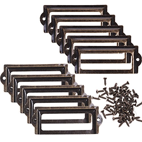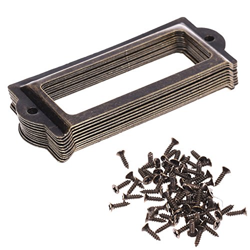 BCP 10pcs 83 x 33mm Bronze Color Metal Office File Cabinet Shelves Drawer Name Card Label Holder Frames with Screws