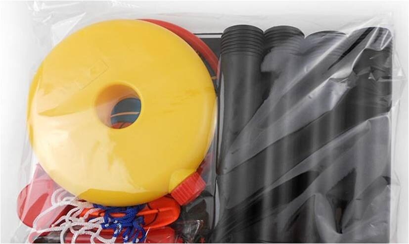- Children Sports Basketball Toys Set 52cm-115cm adjustable Just buy one set, 4 different height. Safe inflatable basketball. Colorful solid backboad, 4 easy to assemble connecting poles, assemble different height as you wish, 52-115CM height free to set (adjustable). Fill the base with water or sand for extra stability.