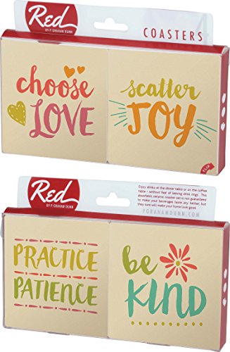 Choose Love, Be Kind Cursive Floral Hearts 4 Piece Absorbent Ceramic Coaster Set