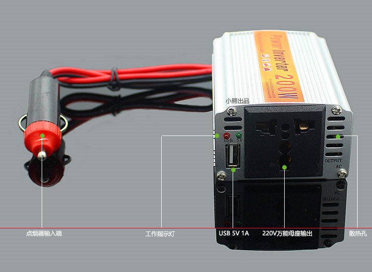 Overload protection: When the connected device exceeds the rated power of the inverter (W), the inverter will shut down automatically.